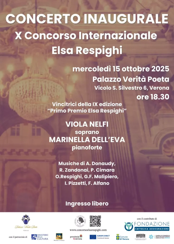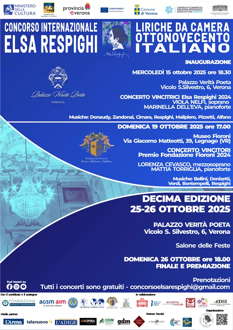 “Concorso Elsa Respighi APS -Verona” presenta la X edizione del Concorso Internazionale di Musica vocale da camera intitolato a